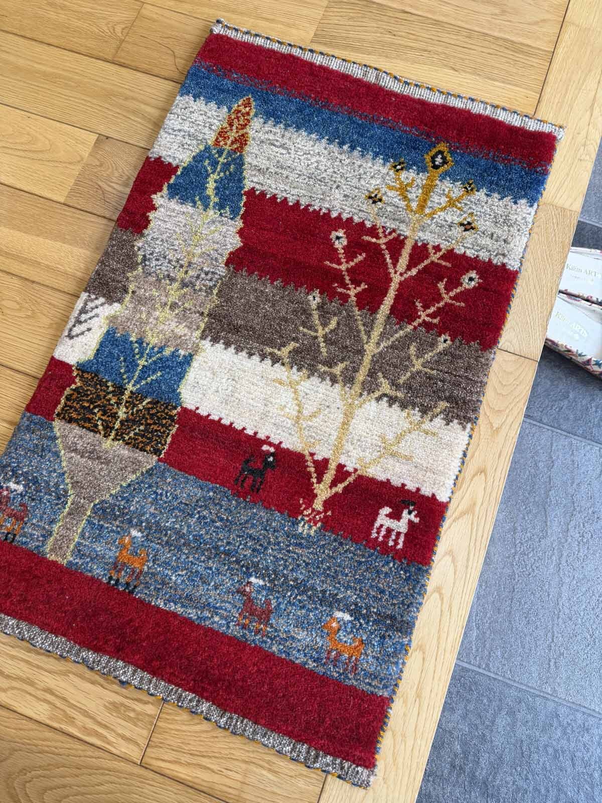 カシュクリは冬を越した羊の毛を使い手紡ぎされたランクの高い糸を使っています。肌触りも柔らかく光沢があるのが特徴です。結びが細かく整った模様が魅力です。毛足は短い目でスッキリした印象。