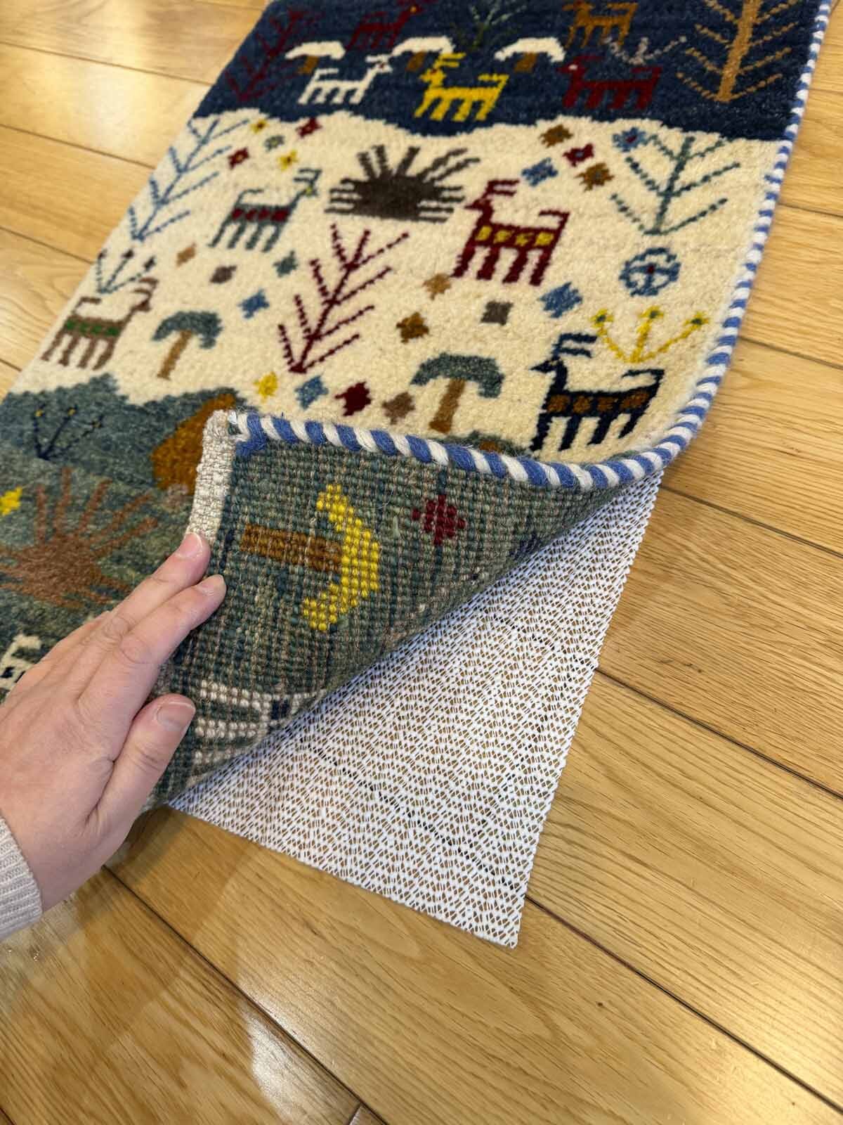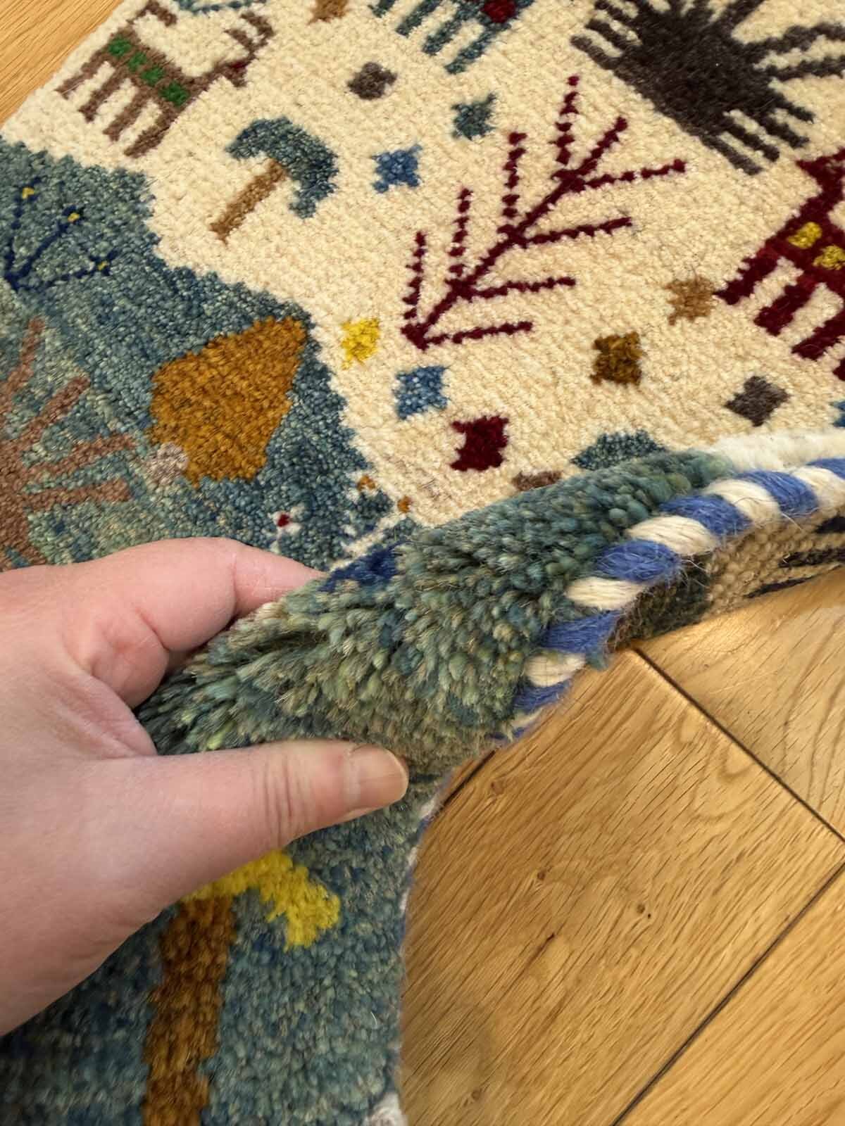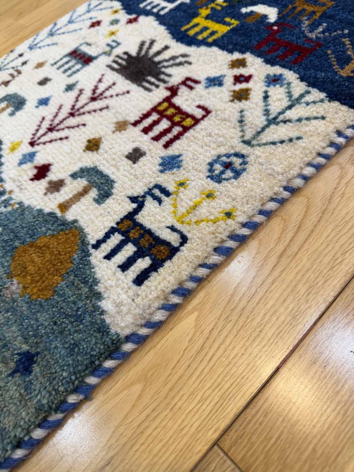 カシュクリは冬を越した羊の毛を使い手紡ぎされたランクの高い糸を使っています。肌触りも柔らかく光沢があるのが特徴です。結びが細かく整った模様が魅力です。毛足は短い目でスッキリした印象。
