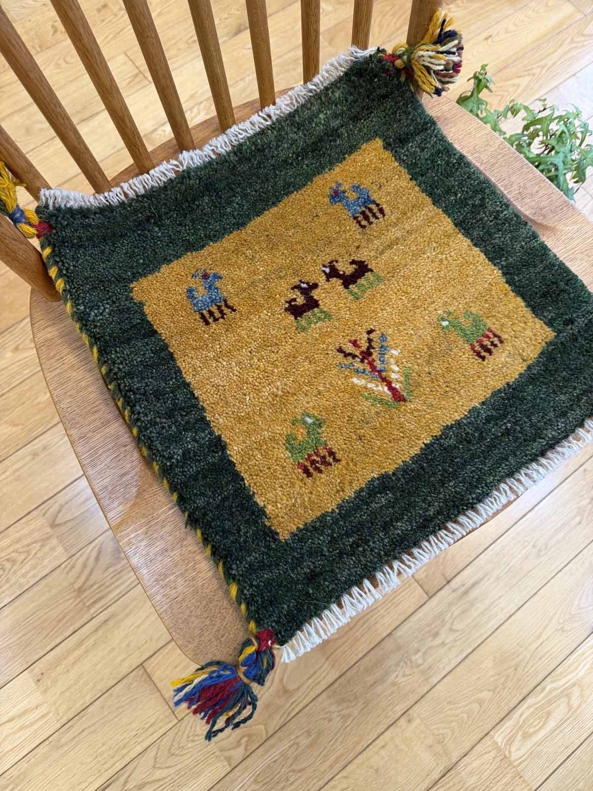 ダイニングチェアやベンチにちょうどいいギャッベ座布団サイズ。