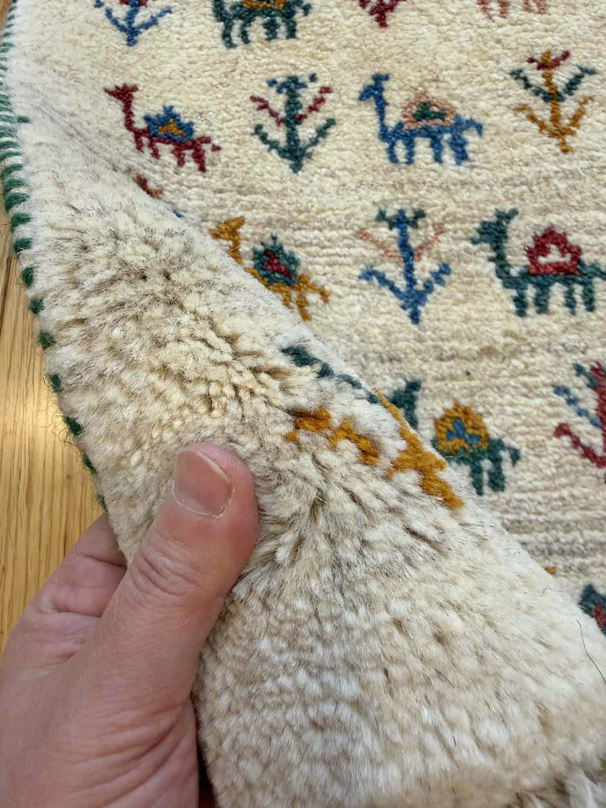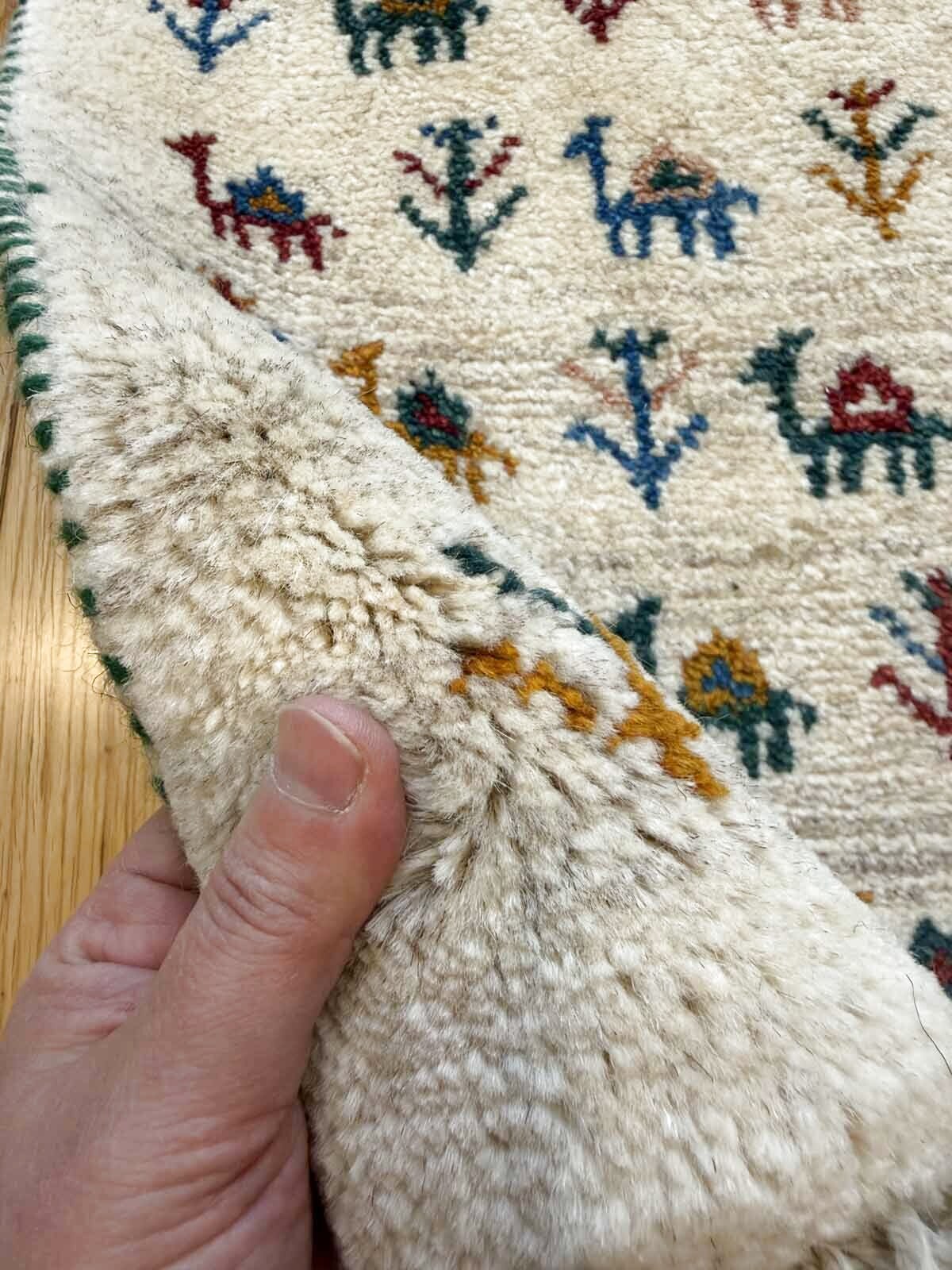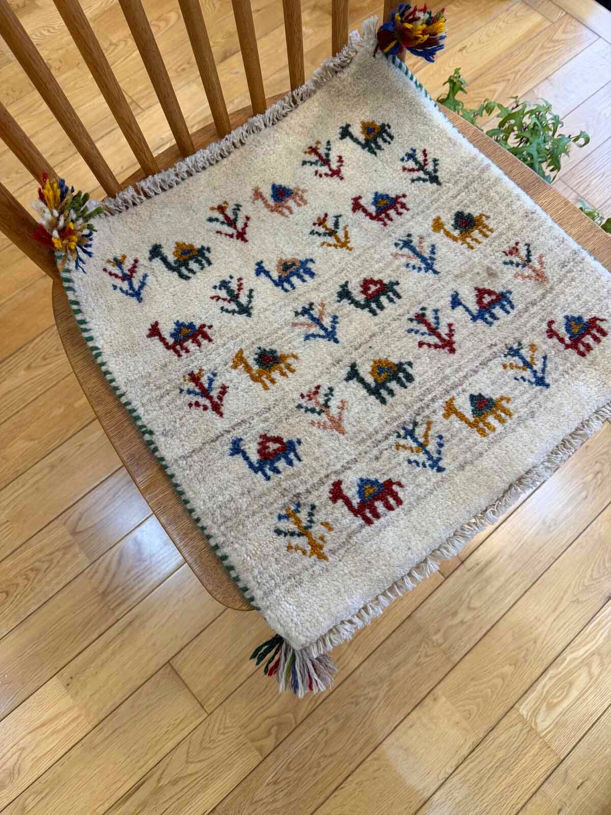ダイニングチェアやベンチにちょうどいいギャッベ座布団サイズ。