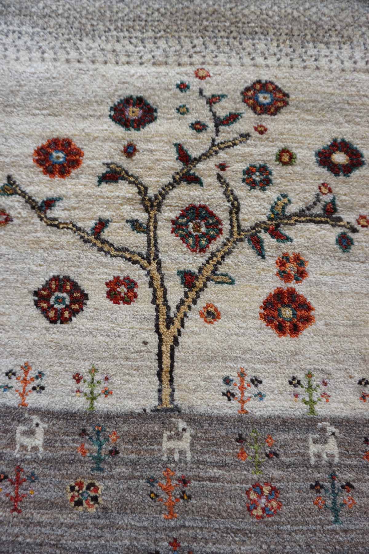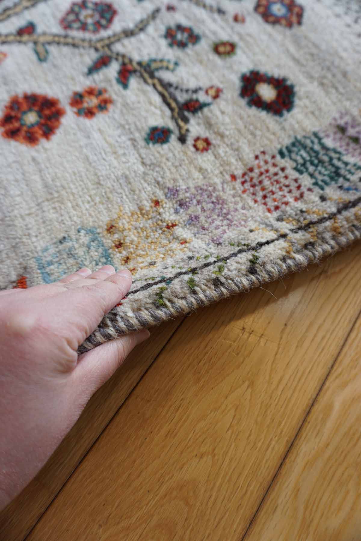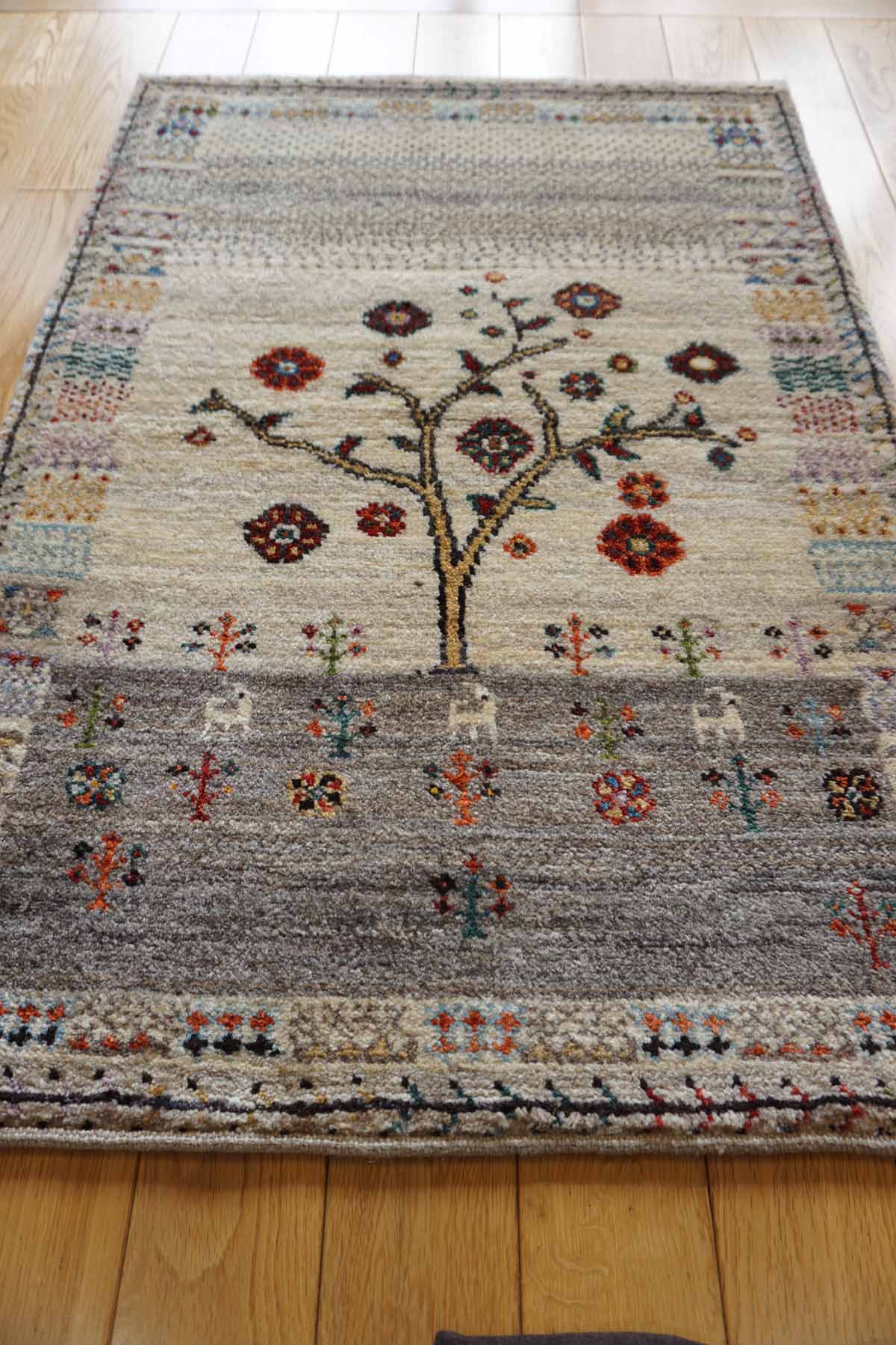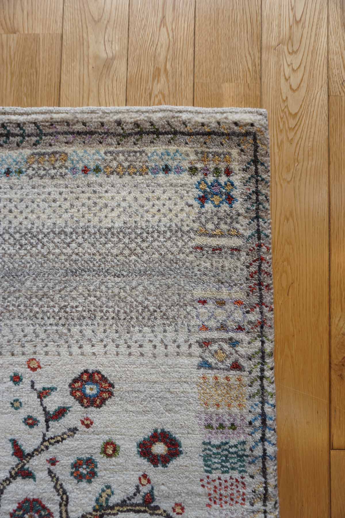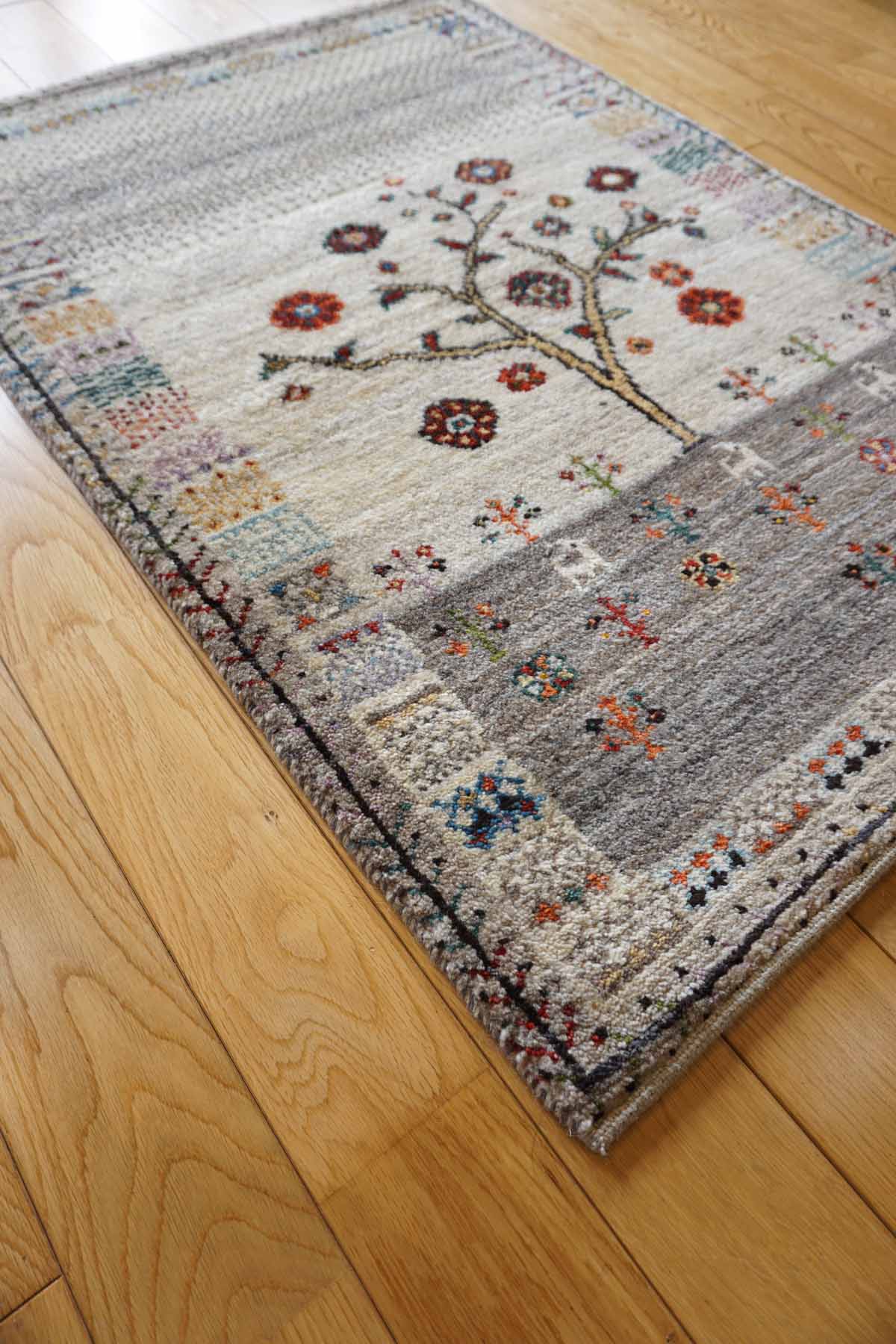 アメレは手紡ぎされたランクの高い糸を使っています。結びが細かく整った模様が魅力です。ウールの柔らかさにこだわっておりカシュクリよりも毛足が長めでフカフカしています。