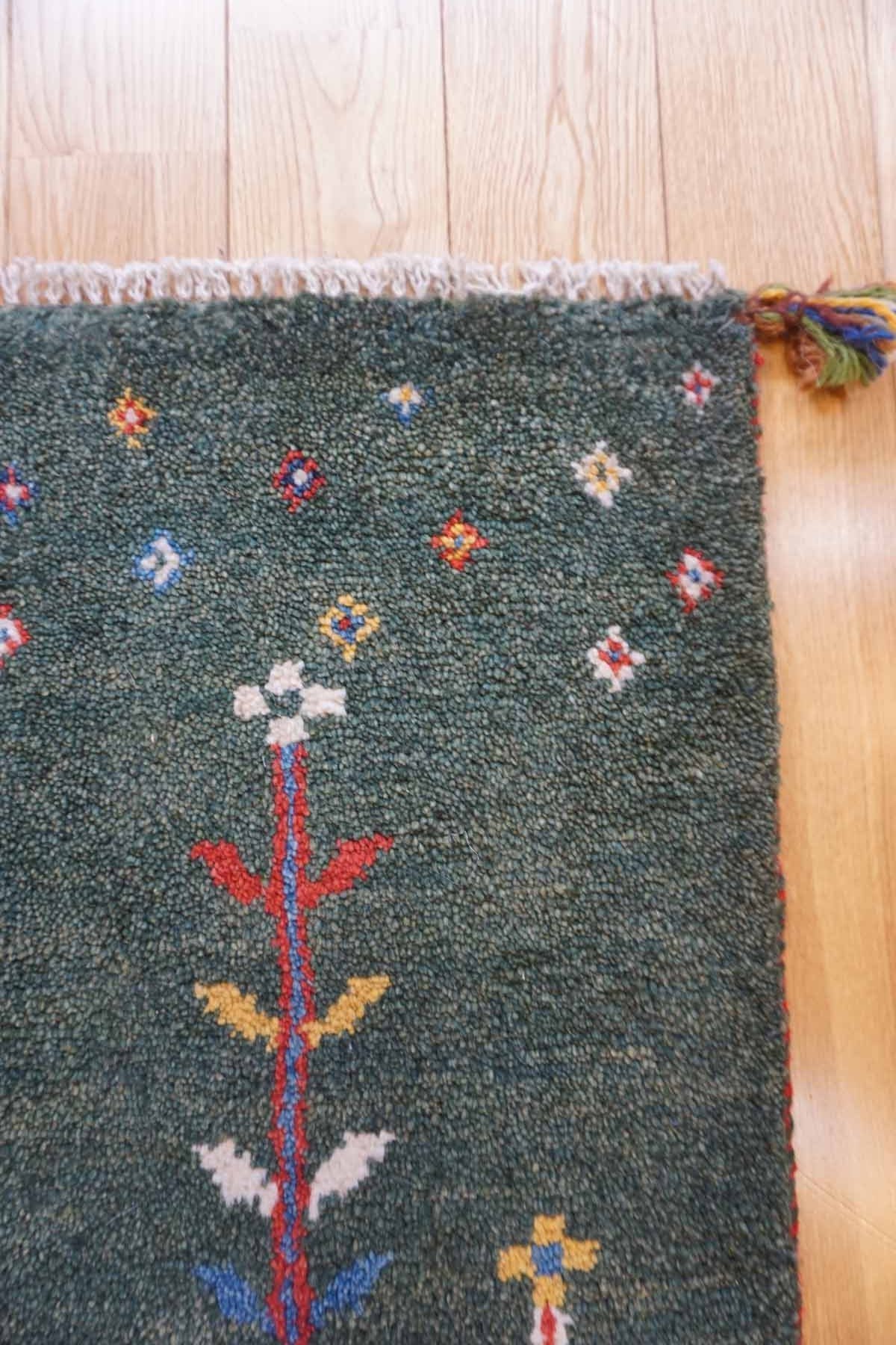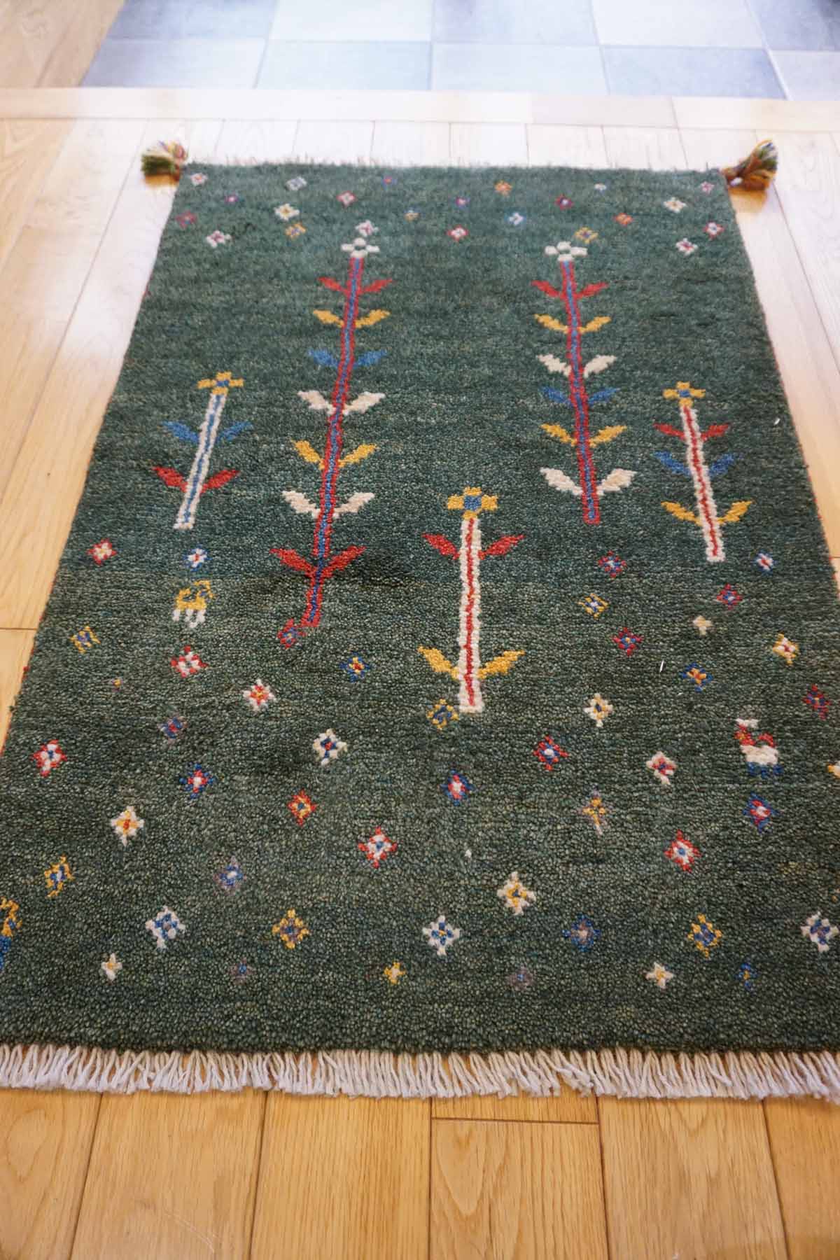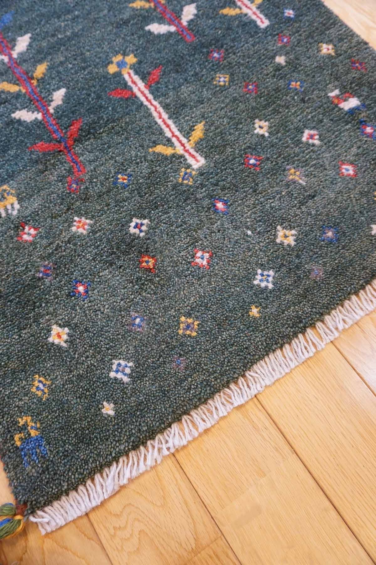 ギャッベは毛足が長くフンワリ感があります。結びが大きいので模様も大きく手作りの温かさがあります。